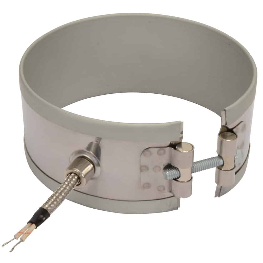 The one-piece expandable construction is available on any screw or lead and clamping variation and can be used where a one-piece band heater would have to be expanded to fit over the barrel during installation, rather than slipped over the end of the barrel.