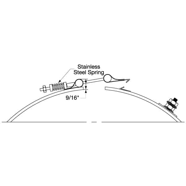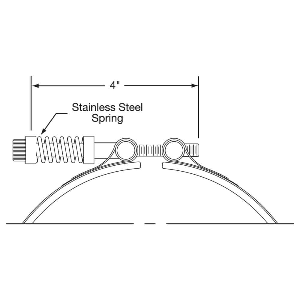 The Heavy Duty Stainless Steel Spring with Built-In Bracket is a variation on the basic Duraband design. It is available with any screw or lead termination and construction variation. It is recommended for heaters over 12″ in diameter, and for any diameter heater used in the vertical position, to prevent the heater from slipping off the machine. The springs provide constant tension, therefore maintaining optimum surface contact against the cylinder being heated.