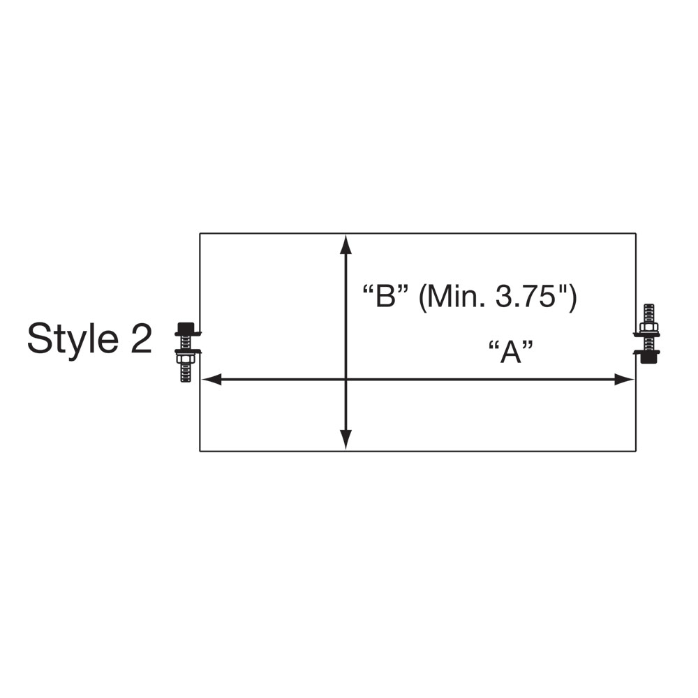 Style 2 for 2-piece heaters: bent-up flange clamping or built-in strap brackets at the sides requires a minimum “B” dimension of 3.75″ (95.3 mm).