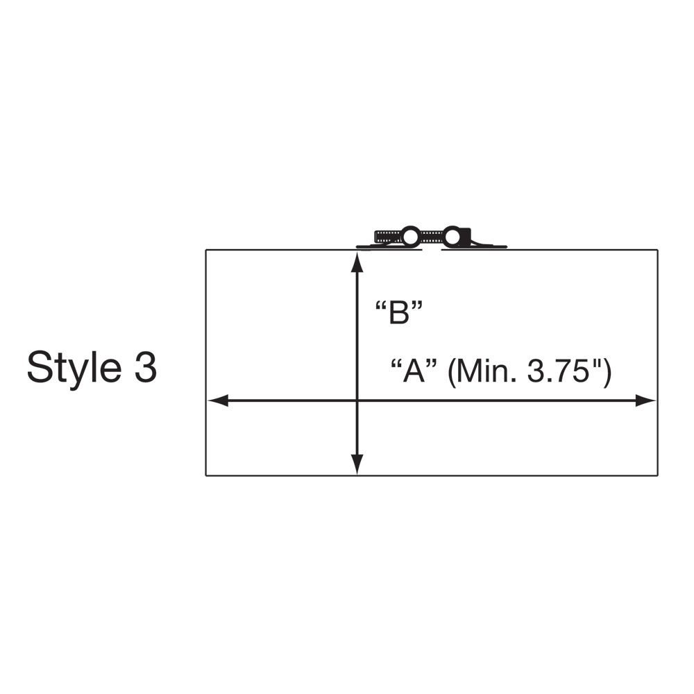 Style 3 for 1-Piece Heaters: bent-up flange clamping or built-in strap brackets at the sides requires a minimum “A” dimension of 3.75″ (95.3 mm).
