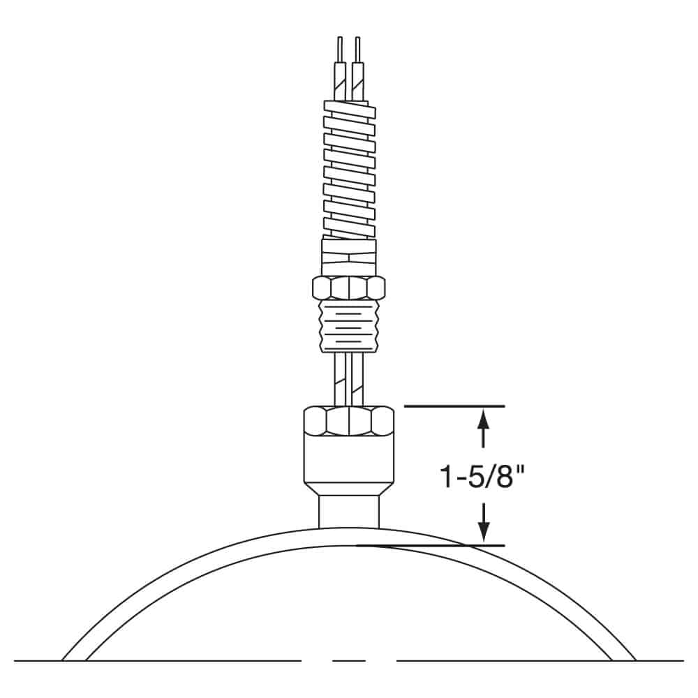 A standard Bayonet Adapter facilitates the installation of an external thermocouple with a standard bayonet cap. The standard location for the adapter is 90° from the gap. Specify without through hole for heater sensing or with through hole for load sensing. For heaters less than 1″ wide order separate strap clamping and utilize the gap for the thermocouple. Refer to Temperature Sensors for a complete selection of thermocouples available from stock.