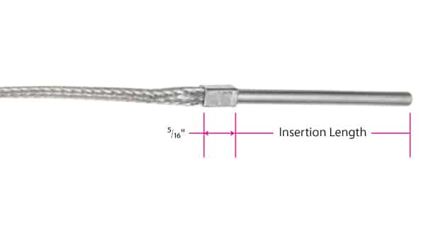 The thermocouple junction is grounded to the sheath at the lead end. A minimum of 3/8″ of cold section is required. It provides good temperature readings with quick response.