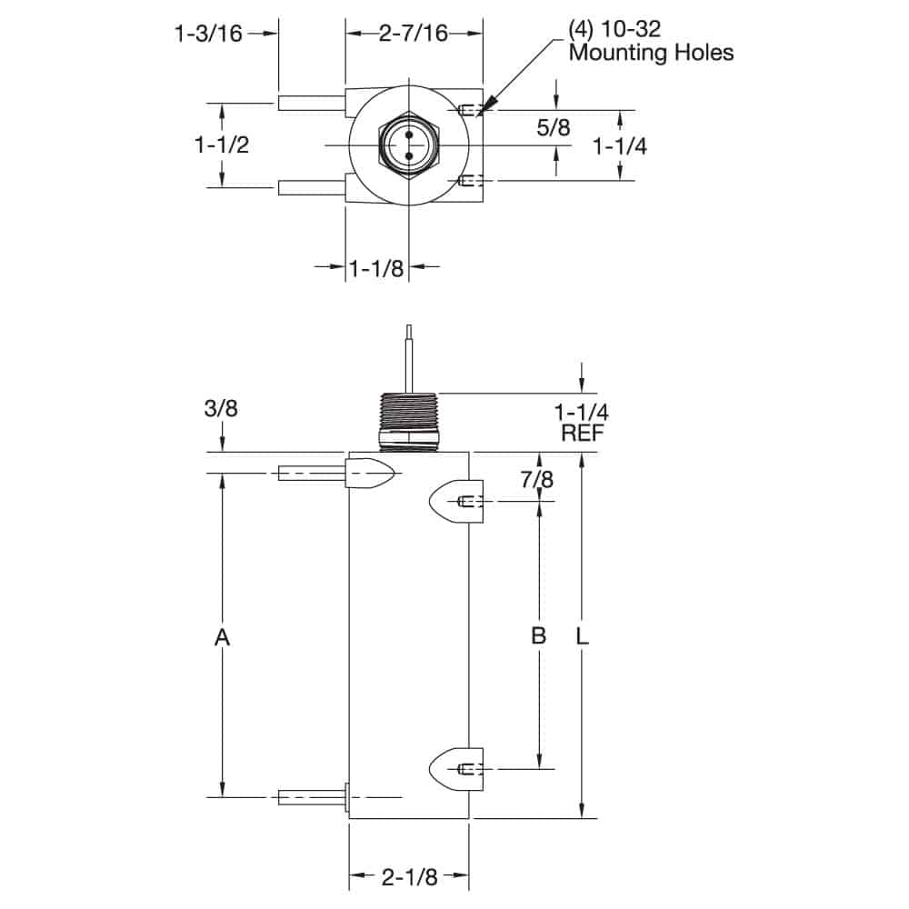 | Length L | Inlet-to-Outlet Centerline “A” | Mounting Holes “B” | Flow Tube OD | Flow Tube Material | Used with Insulation Blanket |