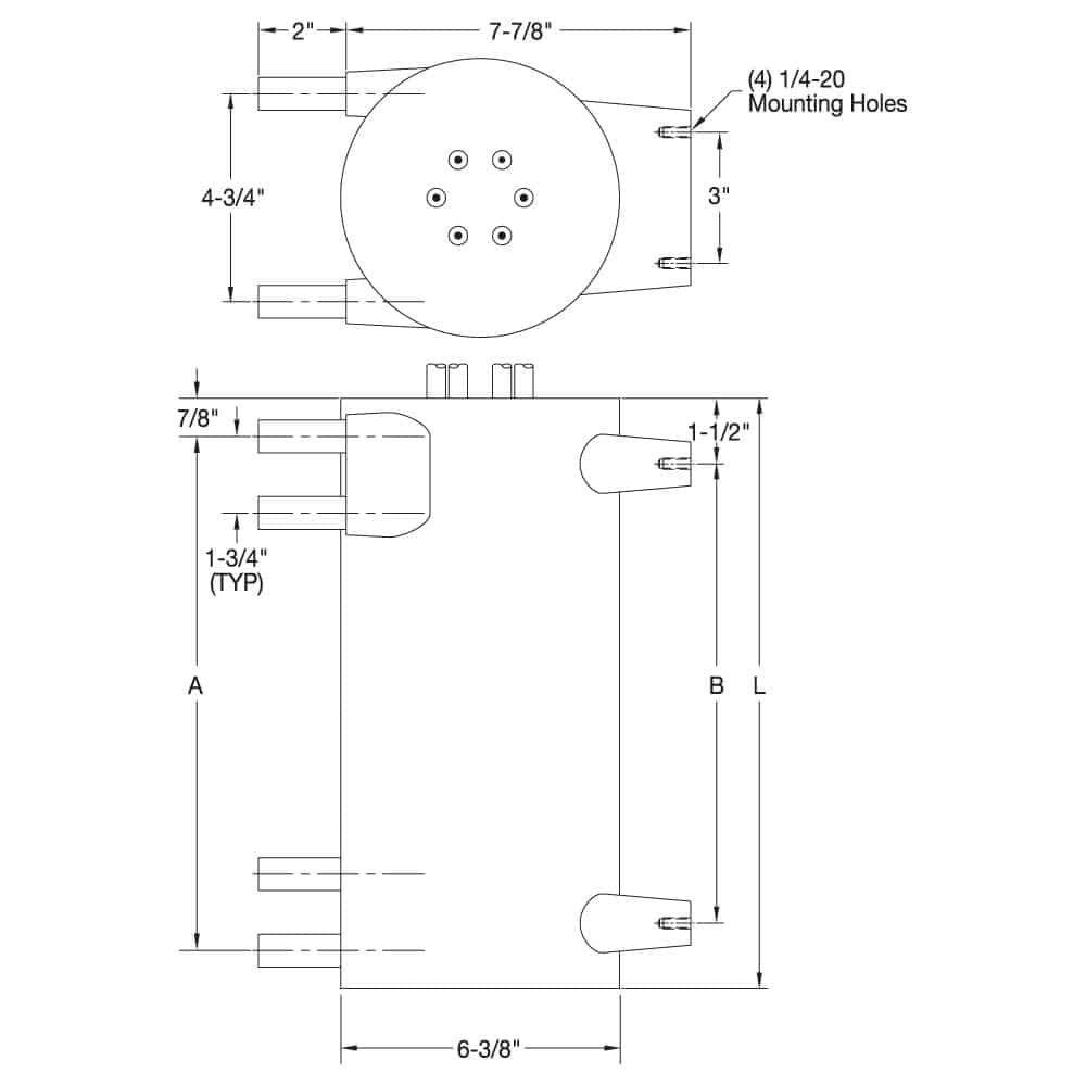 Replaceable 5/8″ diameter Hi-Density Cartridge Heater Cast Aluminum heat exchanger body Operating pressure up to 3200 PSI Operating temperature up to 650°F (343°C) Heater Lengths: 6.5″ and 12.5″