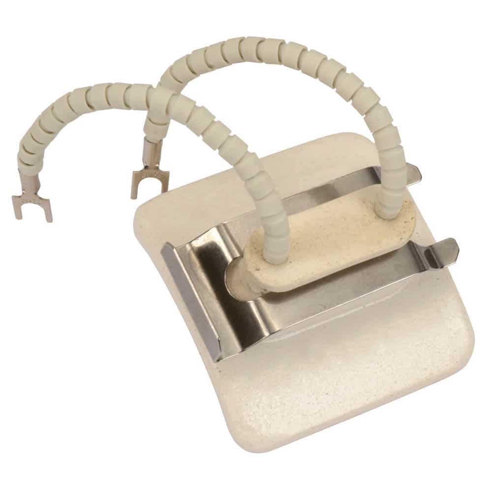 Part Number: SPR-103-102 Designed for heater mounting with 22 ga (.028″) to 20 ga (.037″) sheet metal. Thinner or thicker materials require the Two-Piece Mounting Clip.