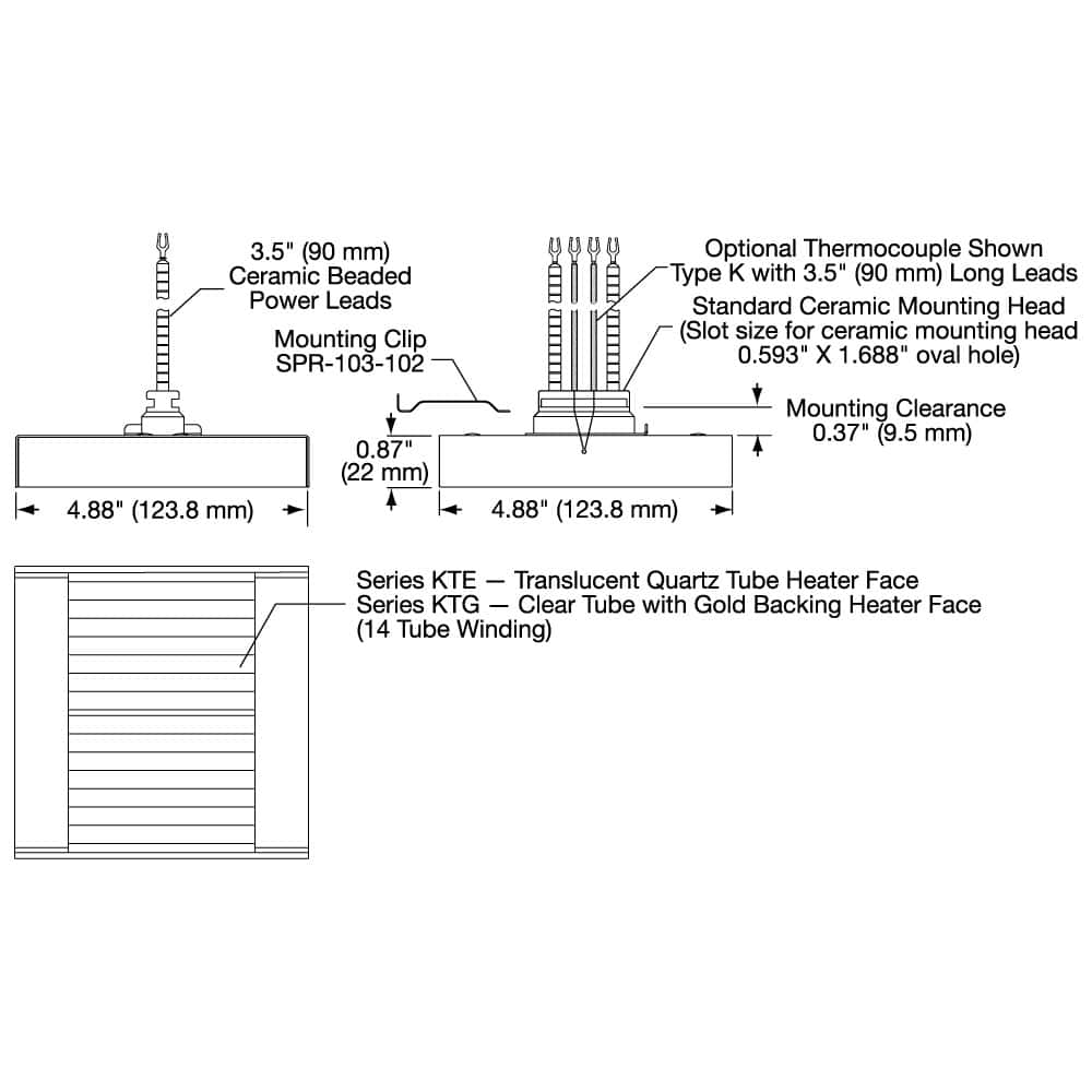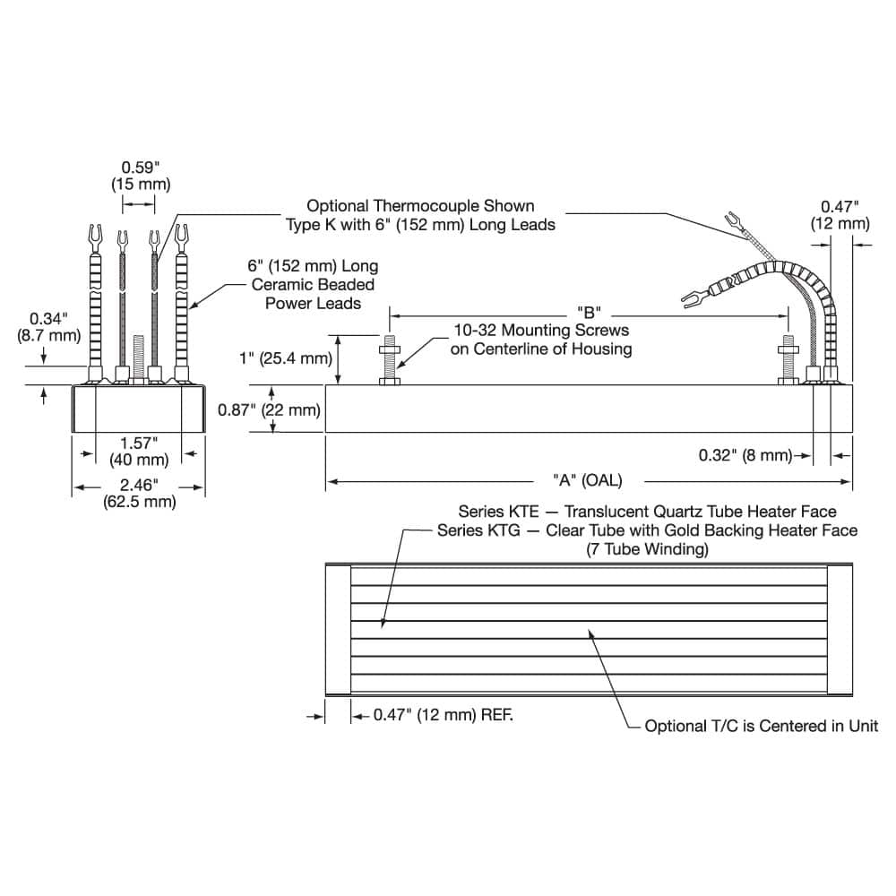 9.75″ × 2.46″ (247.7 × 62.5 mm) Available in Two Constructions — Translucent Tubes (KTE1) — Clear Tubes with Hi-Efficiency Gold Coated Ceramic Backing (KTG1)