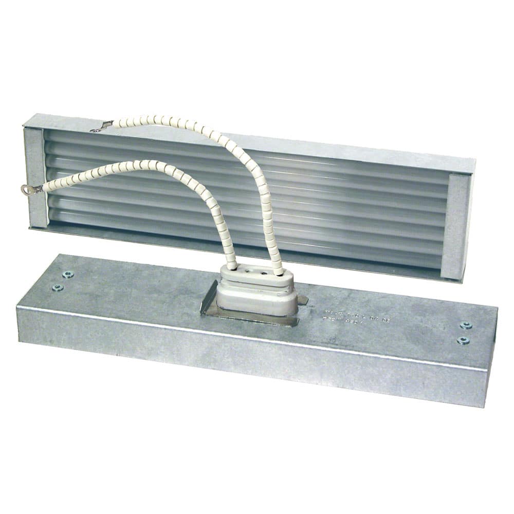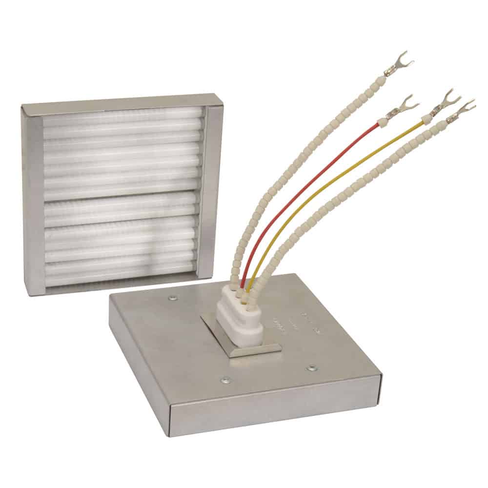 Design Features Clear Tubes with Gold Coated Ceramic Backing: up to 95% reflective efficiency Standard industry sizes and ratings up to 60 w/in2 (interchangeable with CRC, CRB, CRN and CRZ ceramic heaters). Highly reflective rugged aluminized steel housing construction. Rapid response — 2.5 to 7.5 deg F / sec. heat-up / cool-down rates, depending on unit watt density. Medium wavelength output (2.5 – 6 microns). Standard winding pattern gives uniform heating over entire face of heater. (Consult factory for custom or high intensity winding patterns and/or sizes.) Optional built-in type K or J T/C available in center of unit face. Ideal for systems requiring small area zoning and close control of process. Best when used at radiation distances of 4 – 10″ from work. Suitable for horizontal or vertical operation with tubes in horizontal plane. Designed for use in CRA linear structural housings and ARV array assemblies 120, 208, 240, 277 or 480V design (consult factory for 575V units)