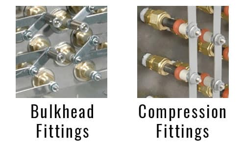 Standard field replaceable elements are held in place with single-screw quick-release “V” clamps. Pressure resistant designs utilizing welded elements, bulkhead fittings, or compression fittings to attach elements to the flange are available to limit leakage of ducted air or gases into the terminal enclosure. Welded elements are used for gas tight applications.