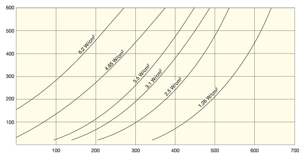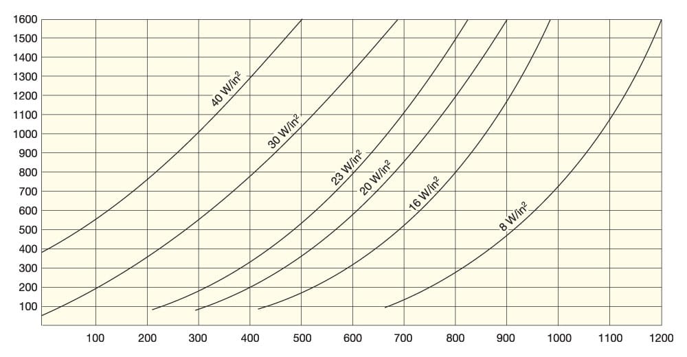 - Element Watt Density vs. Sheath Temperature and Air Velocity Graph