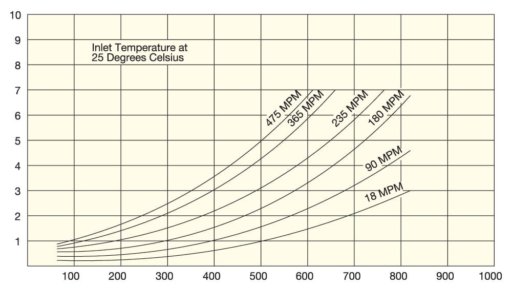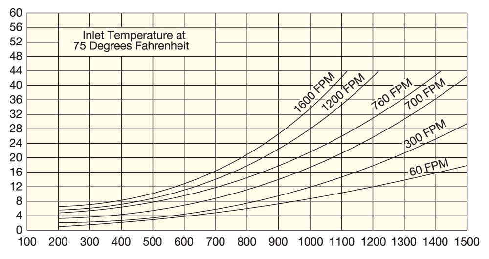 This table is for quick-estimation purposes and is based on air under standard conditions (70°F inlet air temperature at 14.7 PSIA).