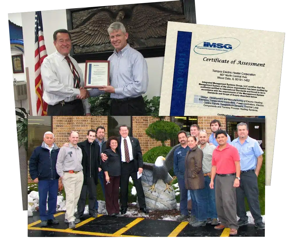 Today we manufacture approximately thirty different types of electric heating elements and temperature sensors with hundreds of design variations. Some of our products were original developments in the industry for which Tempco holds patents. Many of our manufactured products are UL certified and CSA recognized. In addition to meeting our own rigorous quality standards, Tempco is an ISO:9001 certified company.