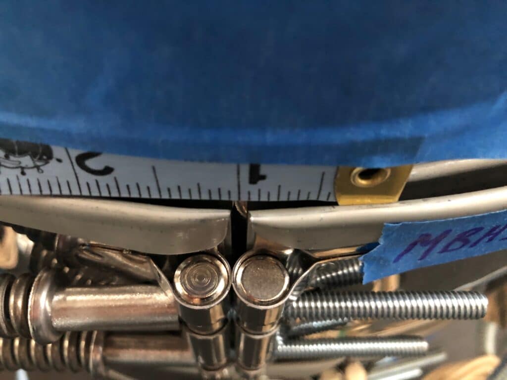 A customer in the Health Services Industry ordered a mica insulated band heater from Tempco at a specified inner diameter (ID) of 16″. Upon receiving the heater and test fitting it, our customer discovered that the actual outer diameter (OD) of their mandrel was 15-7/8”. In a typical installation of a band heater, the ID of the heater should be identical to the OD of the barrel. In this case, the discrepancy between their mandrel OD and the heater ID caused the heater’s gap of 3/8” to be lost. This resulted in a loose-fitting installation. While the difference between 16” and 15-7/8” may seem small, that difference translates to approximately 0.39” in the heater’s case length.