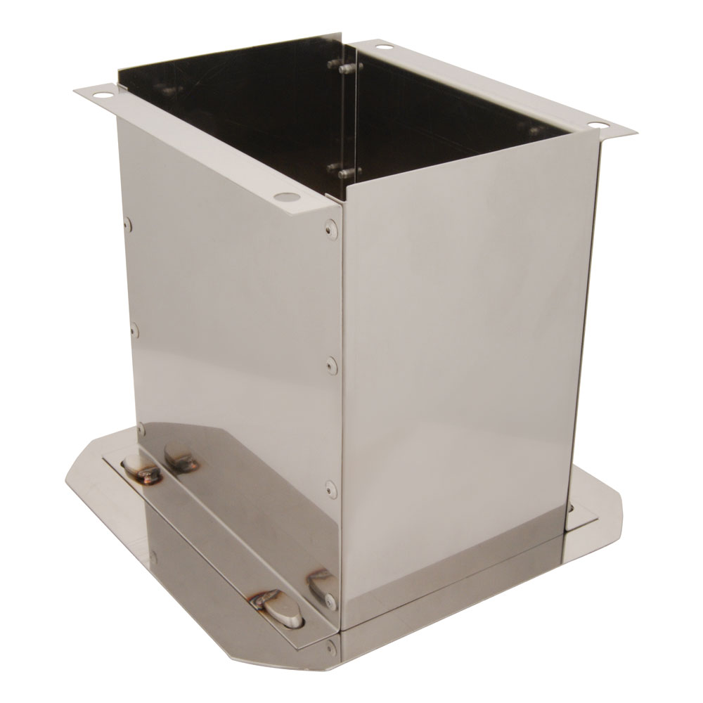Shroud is hinged on one side and secured with clamps on the other; designed for ease of installation. NOTE: Not available on Cast Aluminum Shrouds.